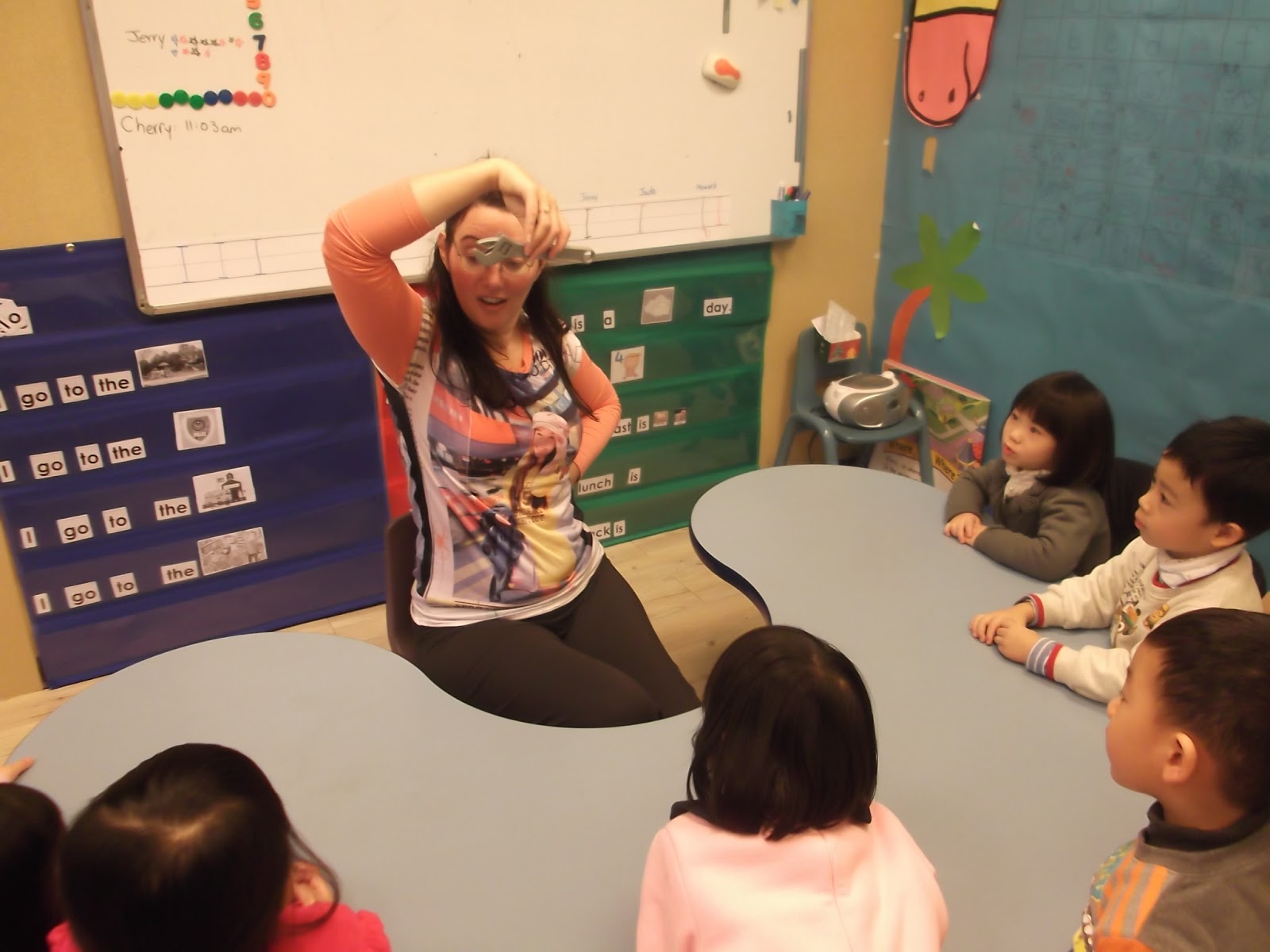 Circle Time: We talked about numbers, colors, weather and date everyday.