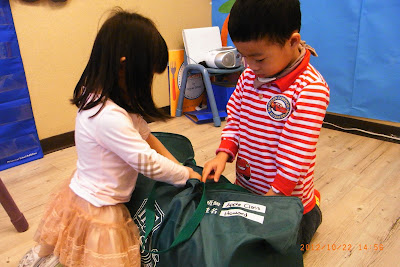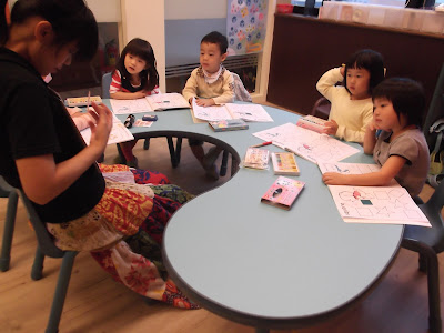 Theme Class: We were playing "Cards Hunt" to review vocabulary of school supplies.