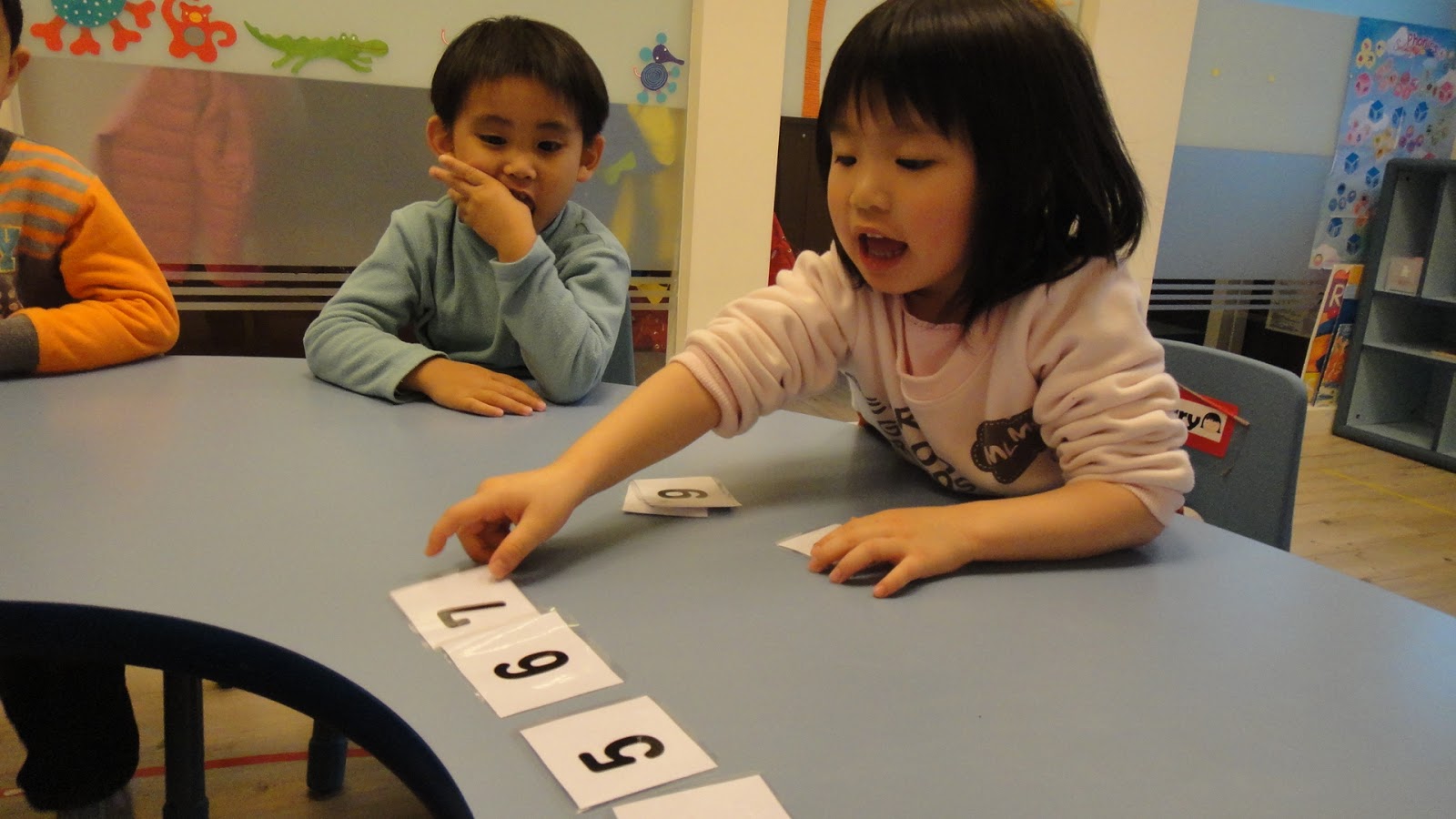 Math Class: We have two hands, right and left. We have five fingers on each hand. Students put number stickers on the fingers in order.