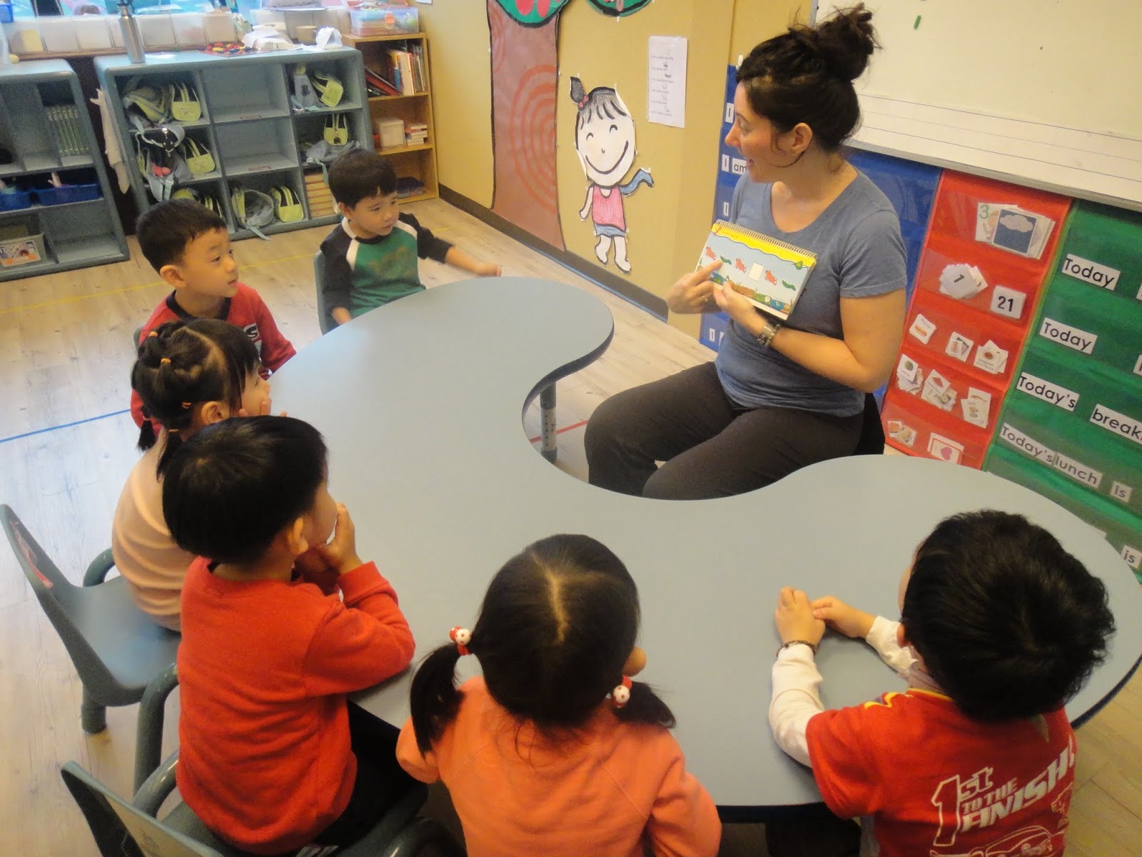 Everyone finished water early that day. So we turned off the light and hid under the table together. We surprised Teacher Coco when she came in the classroom.