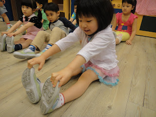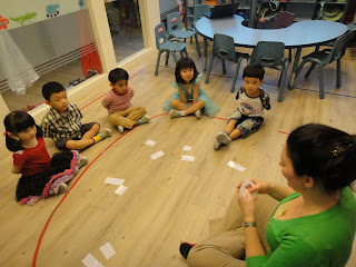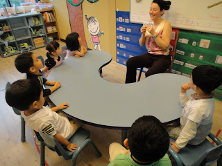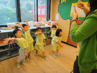 Music Class: Grizzly Bear is a long and difficult song for apple class to learn. One sentence one picture. Teacher Mandy drew the lyrics on the whiteboard to help student remember the lyrics better.