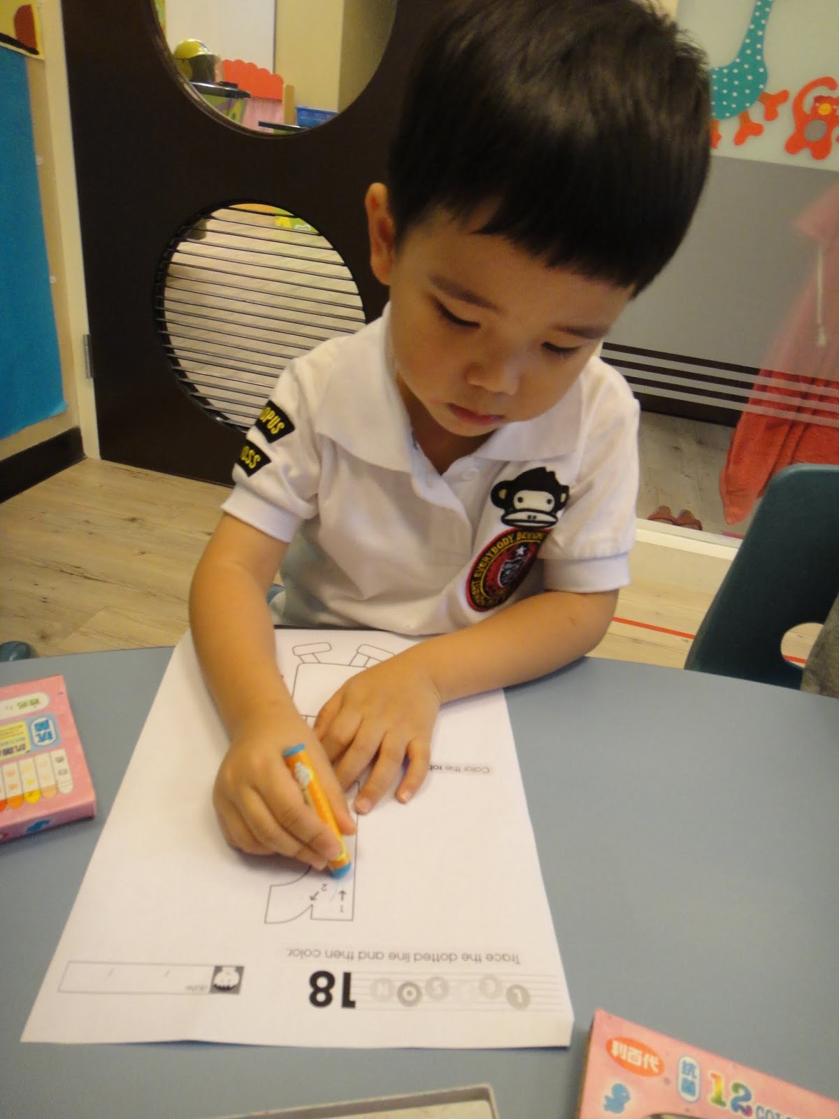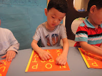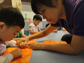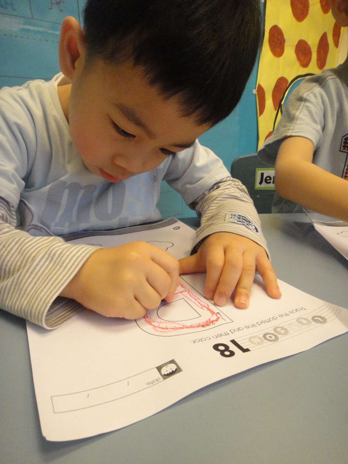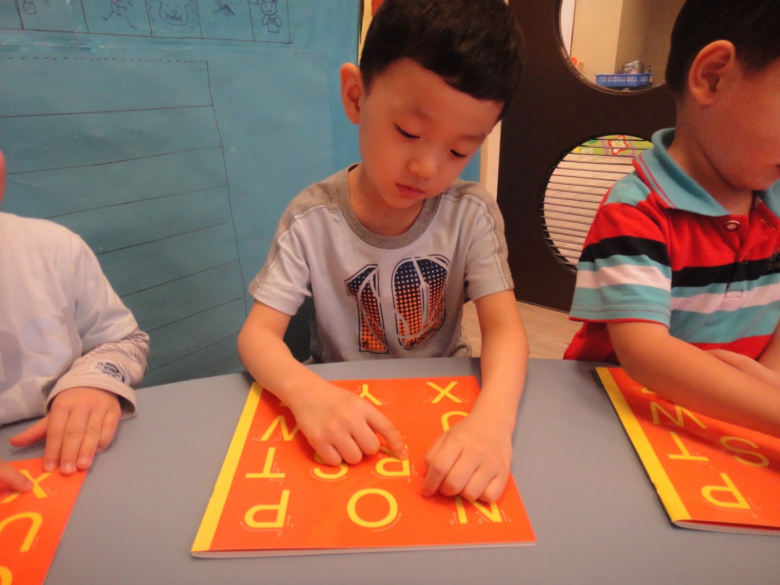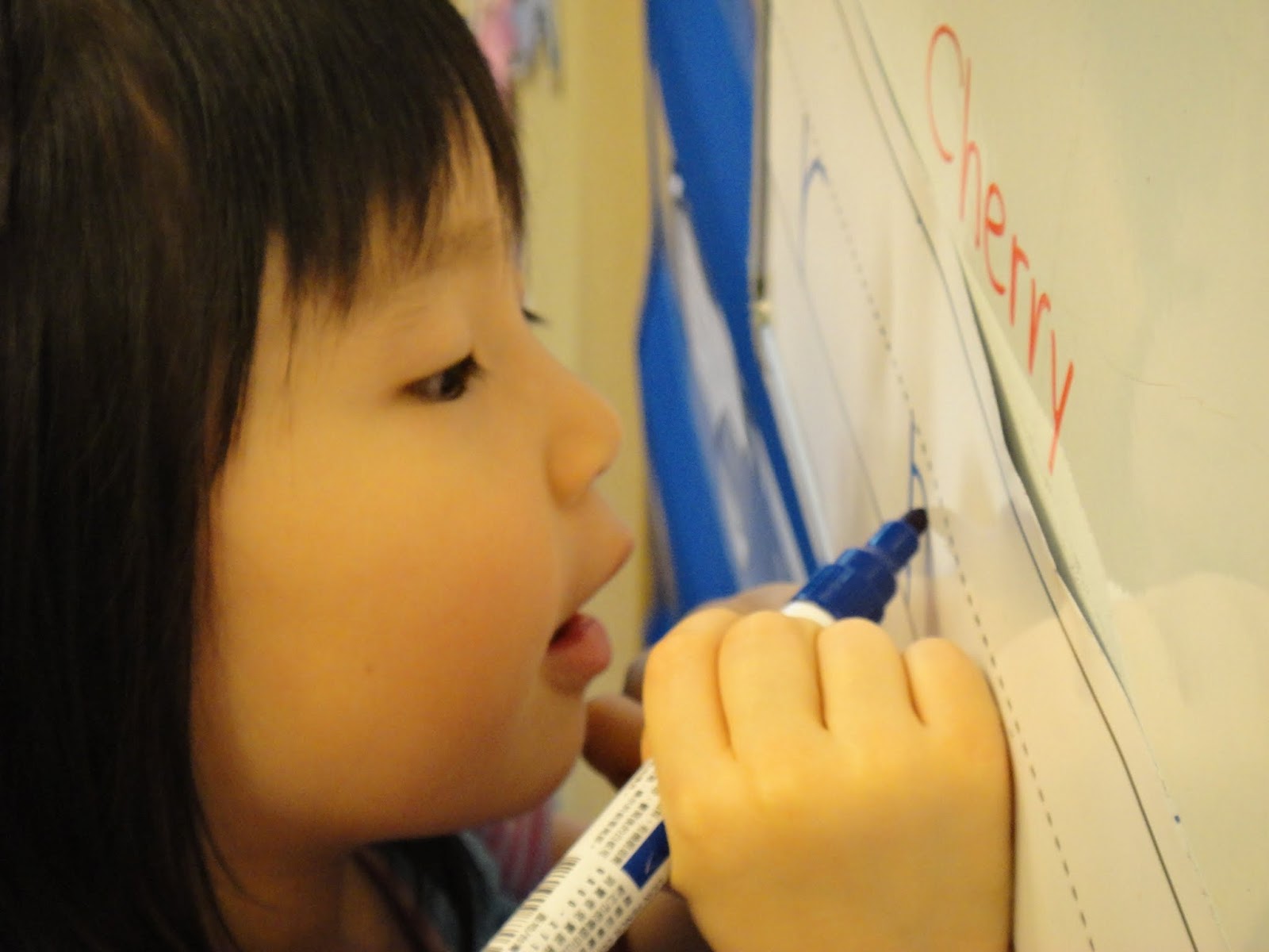 Phonics Class: Practicing letter r on the writing board and the worksheet.