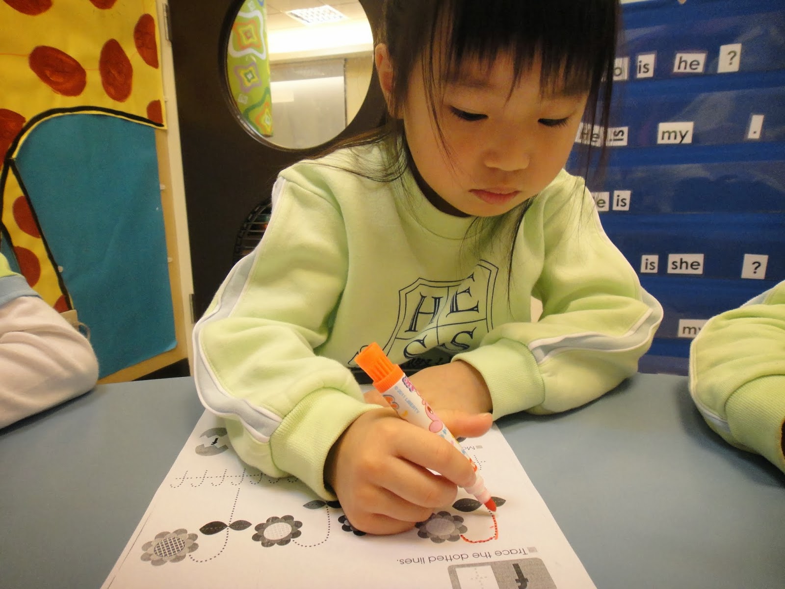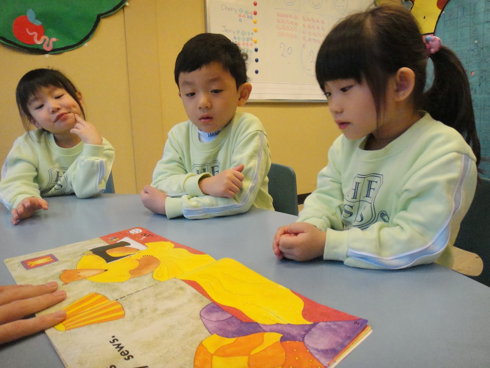 Phonics Class: listening to the phonics story in the book.